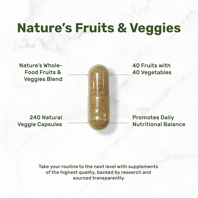 Nature’s Fruits & Veggies Supplement, 240 Veggie Capsules – 80 Whole Food Superfoods for Daily Balance – 40 Fruits with 40 Vegetables and Greens – Non-GMO, Gluten Free