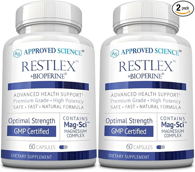 Approved Science Restlex - 420 mg Magnesium Glycinate Blend, L-theanine 200 mg - 60 Capsules - Pack of 2