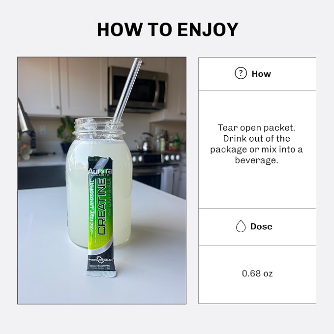 Aurora Nutrascience Liposomal Creatine + GAA & R-ALA Lemon Lime Powder Drink Mix, Increased Energy, Supports Exercise Performance & Muscle Growth for Wowen and Men, 10 Packets