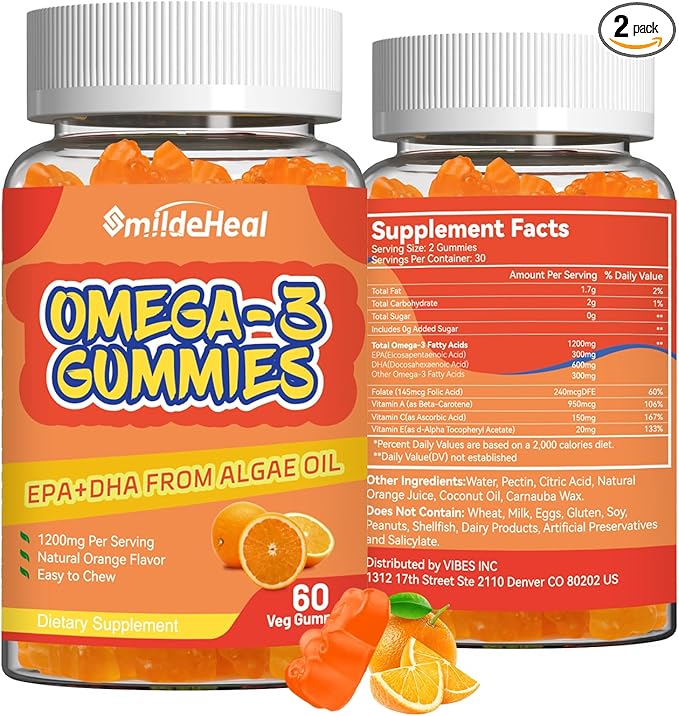 - Vegan Omega 3 Gummies: Our gummies has been carefully crafted without starch, soy, wheat, eggs, artificial colors, flavors or preservatives.
