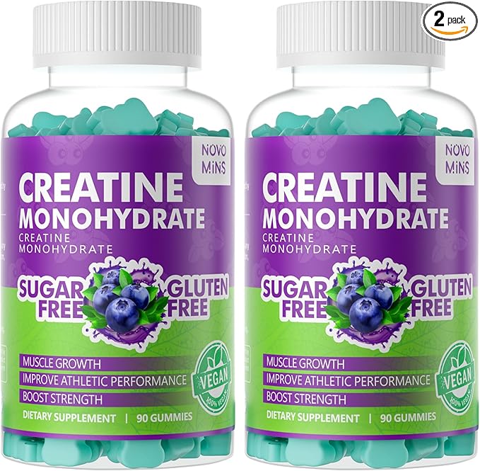 novomins Creatine Monohydrate Gummies for Men & Women, Chewables Creatine Monohydrate for Muscle Strength, Muscle Builder, Energy Boost, Pre-Workout Supplement(180 Count)-Blueberry Flavor. 2 Pack