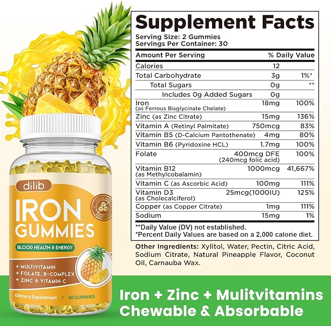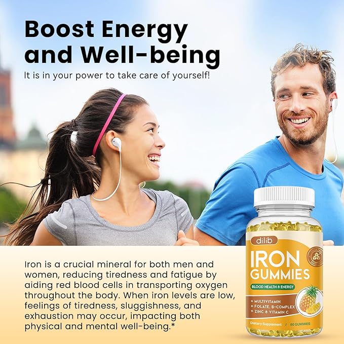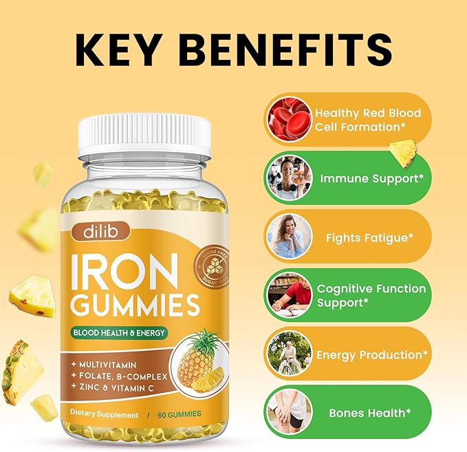 - BOOST YOUR IRON LEVELS NATURALLY: Dilib iron supplement gummies combine essential vitamins and minerals to provide a delicious and easy way to support your daily iron intake. Prevent iron deficiency, promote healthy blood production, and boost energy levels without the discomfort of traditional supplements. These iron gummies effectively increase iron levels and sustain natural energy levels, eliminating fatigue and weakness to keep you energized throughout the day