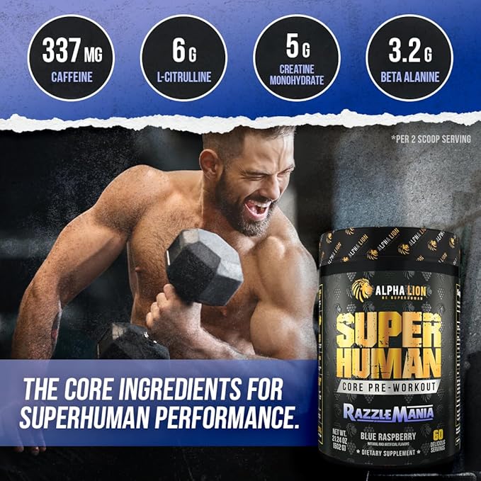 - CORE PRE-WORKOUT: Alpha Lion's Superhuman CORE pre workout provides the essentials needed for sustained energy, focus, strength, endurance and hydration. CORE is the perfect pre-workout for new lifters or advanced lifters looking for a cost effective pre-workout that still delivers all the essentials.