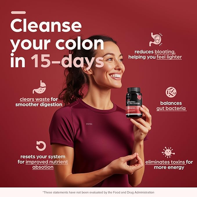 - 2. Colon Cleanse & Detox Support: Our advanced colon cleanse helps waste buildup, reducing bloating and relieving occasional constipation. Formulated with natural ingredients like Senna Leaf and antioxidant-rich Ceylon Cinnamon, it promotes a clean and healthy gut. This 15-day cleanse is ideal for improving digestion and enhancing energy levels, giving you a refreshed and revitalized feeling in just days.