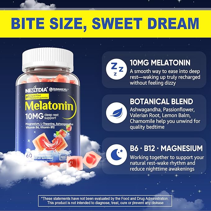 - [Peaceful Nights, Energized Mornings] Achieve balanced wellness with bite-sized melatonin gummy. This powerful blend works together with your body's natural rhythm to promote evening calm and daytime vitality, seamlessly supporting your natural energy around the clock. Rise feeling revitalized and enjoy the perfect balance of recovery and renewal.