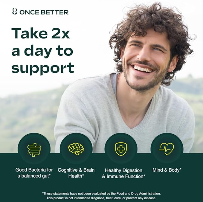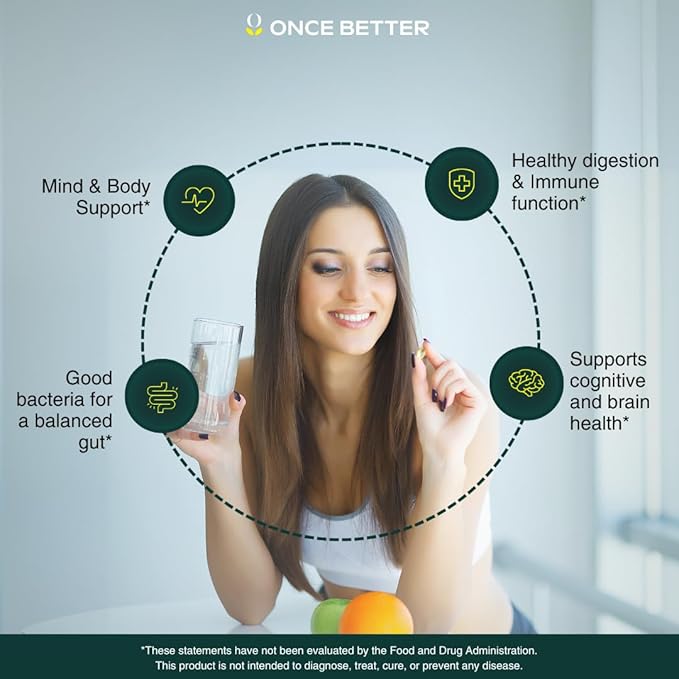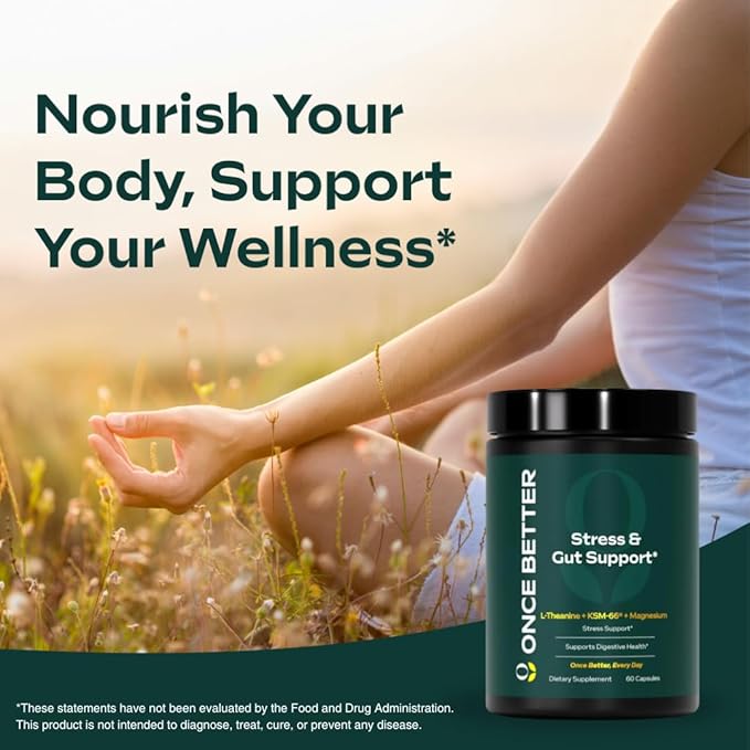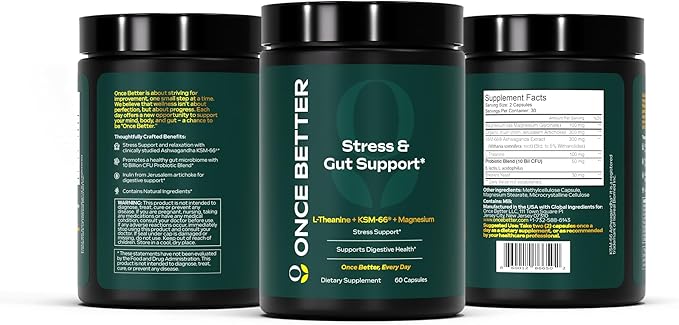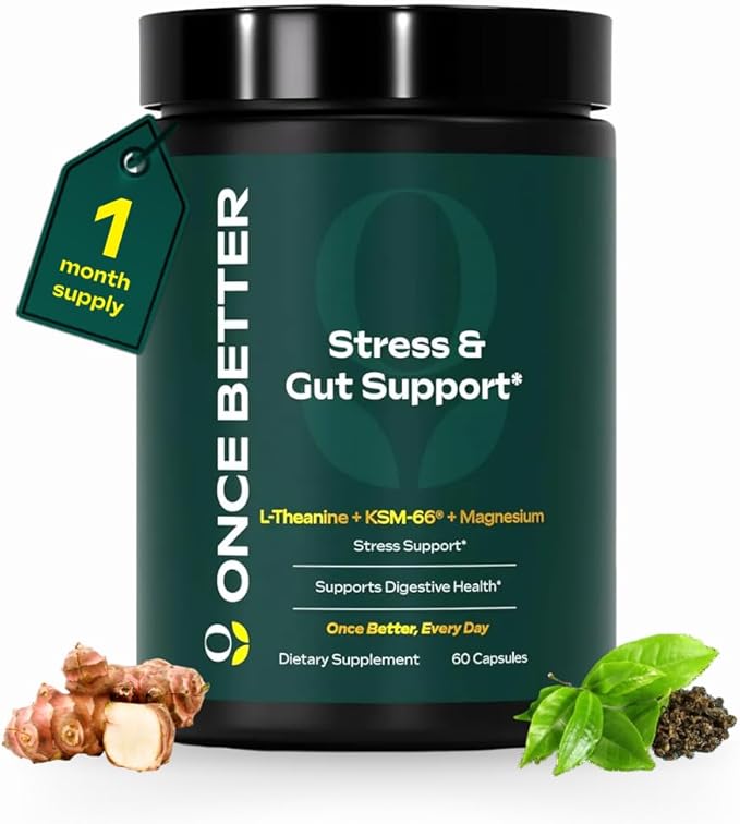 Once Better™️ Stress & Gut Support Supplement – Ashwagandha KSM-66®, L-Theanine, Magnesium Glycinate, Probiotics & Inulin for Digestive Health & Stress Relief – 60 Capsules - Men & Women