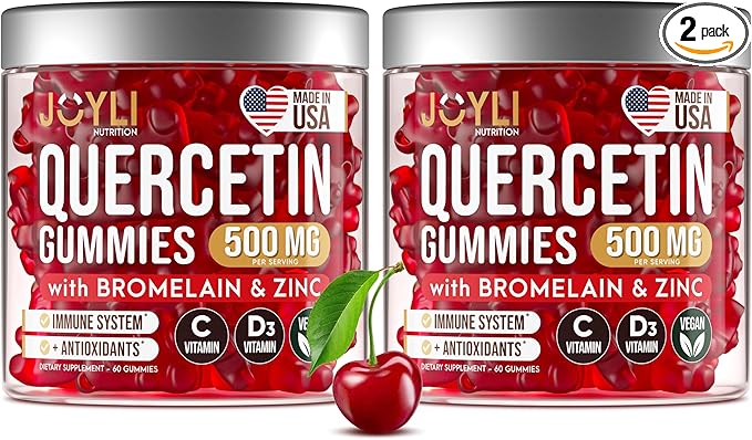 2 Pack - JOYLI Quercetin Gummies with Bromelain, Zinc, Vitamin C & D3 – Sugar-Free Quercetin Supplement for Immune Support & Seasonal Wellness – 500mg Quercetin for Kids & Adults – 60 Gummies per Pack