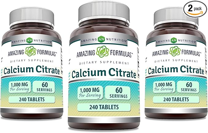Amazing Formulas Calcium Citrate Supplement | 1000 Mg | Tablets | Non-GMO | Gluten Free | Made in USA (3 Pack, 240 Count)