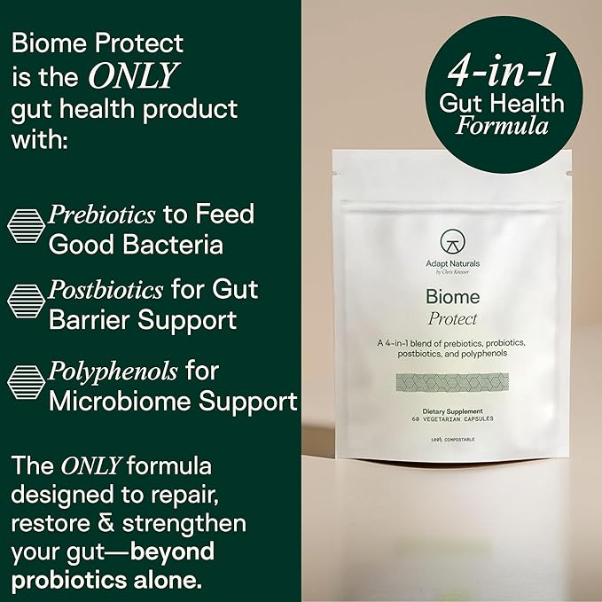 Adapt Naturals 4-in-1 Biome Protect Prebiotics, Probiotics Supplement Postbiotics & Polyphenols for Microbiome, Gut Health & Defense for Women & Men, 30 Day Supply