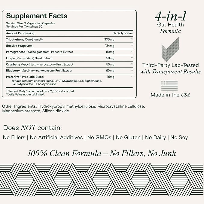 - Powerful 4 - in - 1 Formula: Adapt Naturals' 4 - in - 1 blend of prebiotics, probiotics, postbiotics, and polyphenols nourishes the microbiome, supporting gut health and defense for both genders. Take two capsules daily for 30 - day supply of next - gen support.