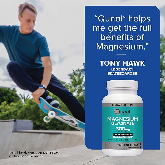 - MAGNESIUM GLYCINATE - Each serving of Qunol’s Magnesium Glycinate contains 300mg of Magnesium from Chelated Magnesium Glycinate