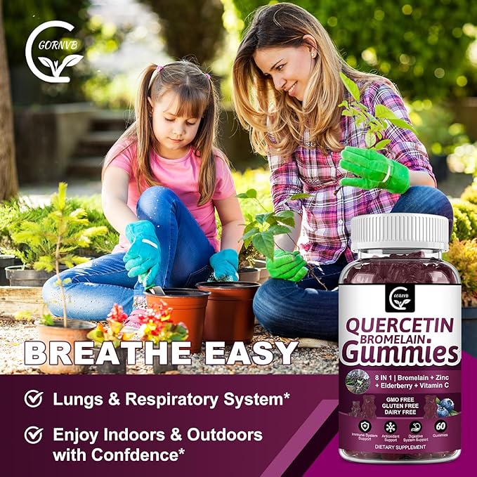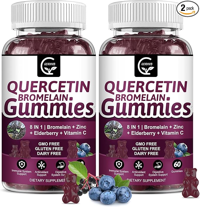- BALANCED IMMUNE SUPPORT: GORNVB Quercetin with Bromelain 1500 MG supplement is specially formulated to boost the immune system and overall wellness. Enhanced with minerals, our organic quercetin gummies are 3x times more bioavailable comparing to quercetin capsules or powder.