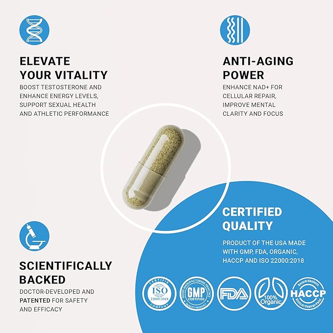 - Designed for the Enhancement of Men’s Health – Unlock your performance and focus with our specially designed NAD supplements for men. Formulated from earthy ingredients such as Mucuna pruriens extract, along with essential vitamins such as Vitamin D, Vitamin B2, Vitamin B6, and Vitamin B12, helps elevate testosterone levels and overall well-being.