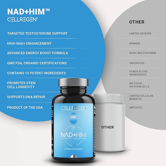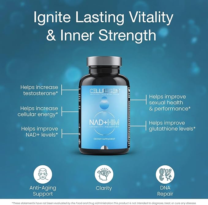 NAD HIM NAD Supplement Nicotinamide Riboside Wellness Formula, Help Restore NAD Levels, Support Testosterone Levels, NAD Supplement for Men, Non-GMO Gluten-Free, 90 Capsules