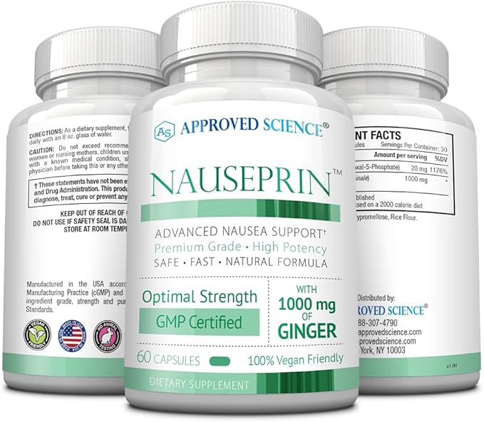 Approved Science Nauseprin - Ginger, Bioactive Vitamin B6-360 Capsules - Vegan