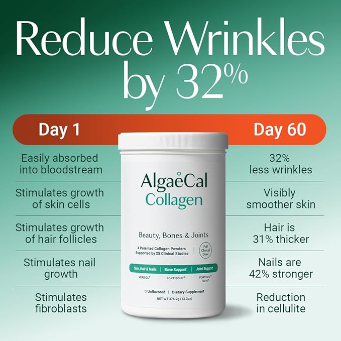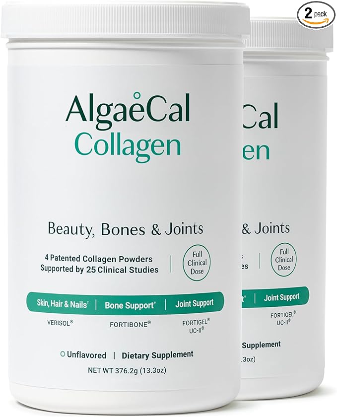 ALGAECAL Collagen - 4 Clinically-Supported Peptides VERISOL®, FORTIGEL®, UC-II®, FORTIBONE®, Anti-Aging Hydrolyzed Collagen Powder, 60 Servings, Made in USA
