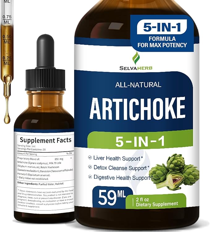 Artichoke Leaf Extract Drops for Liver Detox Cleanse & Repair, Milk Thistle 5-in-1 Natural Herbal Formula, Liver Health Support Supplment w/Dandelion Horsetail, High Absorbtion. 2oz