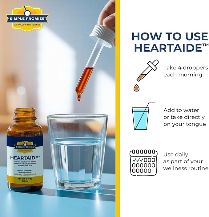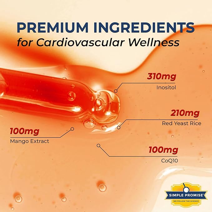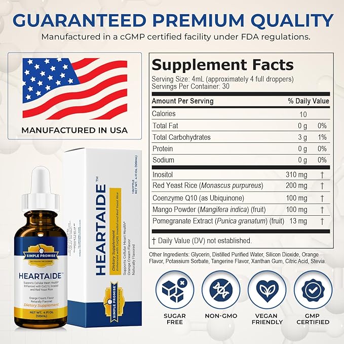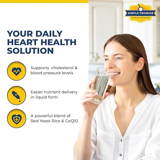 Simple Promise HeartAide - Heart Health Supplement - Red Yeast Rice with CoQ10 (200mg & 100mg) & Inositol - Liquid Drops for Cholesterol & Cardiovascular Support - 4 fl oz, Orange Cream Flavor