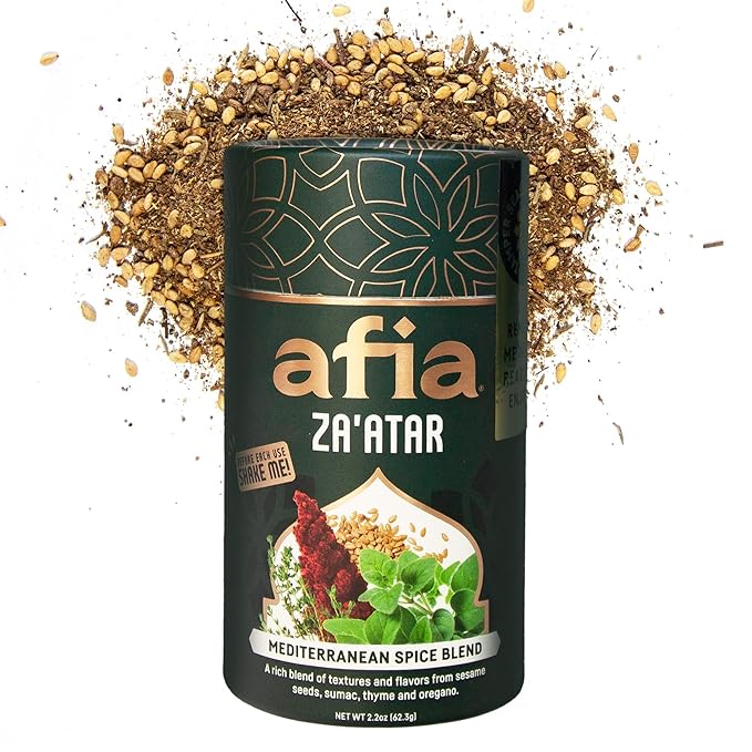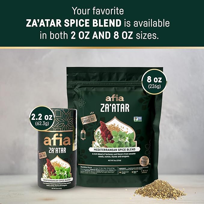 Afia Za'atar Spice Blend | Authentic Mediterranean Seasoning with Sumac, Toasted Sesame & Herbs | Perfect for Dips, Marinades, Flatbreads & More | Non-GMO, No Fillers, No Preservatives (2.2oz)
