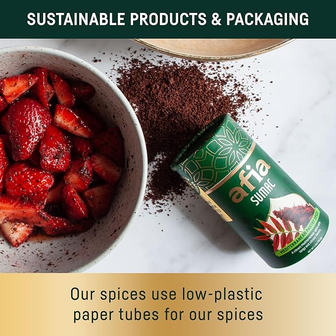 - Sustainable Products & Packaging: Afia believes in using clean, easy-to-understand ingredients in our products and we also aim to minimize our impact on the environment by using low-plastic paper tubes for our spices