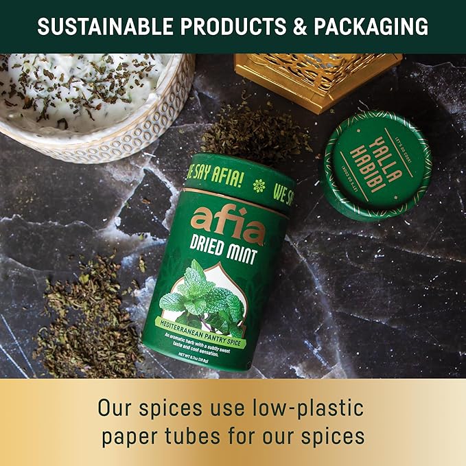 Afia - Dried Mint Seasoning | Dried Mint for Cooking, Mediterranean Pantry Spice for Middle Eastern Dishes, Meals and Cuisine | Premium Middle Eastern Spices (1pk, 0.7oz)
