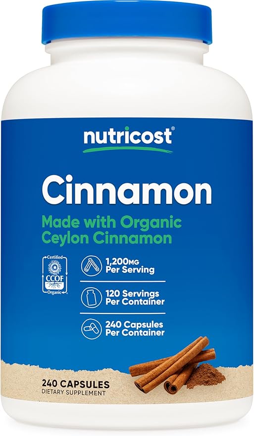 - Ceylon Cinnamon: Delivers 1,200 mg of organic Ceylon cinnamon powder per serving, 120 servings.