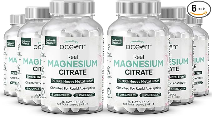 Real Magnesium Citrate - High Absorption Magnesium Supplement - Chelated Magnesium to Support Energy, Relaxation, and Regularity - 6 Pack Bulk Supply