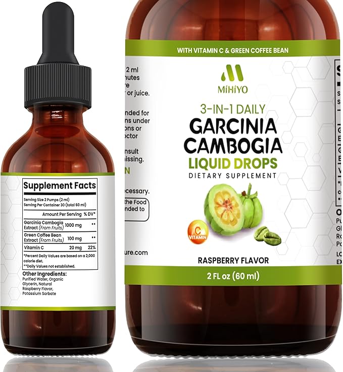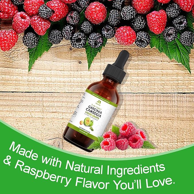 3-in-1 Garcinia Cambogia Liquid Drops - Natrual Extract with Green Coffee Bean & Vitamin C - Support Health and Wellness - Stronger Than Pills & Capsules - Natural Raspberry Flavor - 2 fl oz (60 ml)