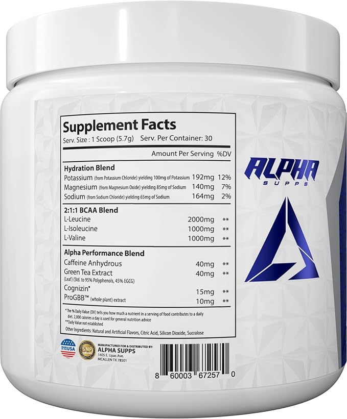 - Unleash Your Potential with Amino NRG+: Experience a surge of controlled energy with 40mg of caffeine in every scoop of Alpha Supps' Amino NRG Bcaa's - just enough to improve energy while managing caffeine intake. This powerful amino energy blend supports peak performance with its focused energy boost, making it the perfect preworkout partner. It keeps you fueled through the toughest workouts and helps you crush personal records, ensuring you stay energized and motivated from start to finish.*