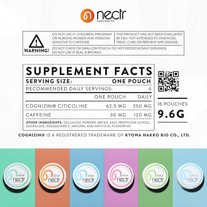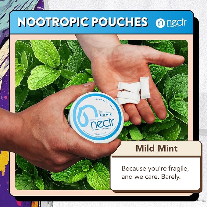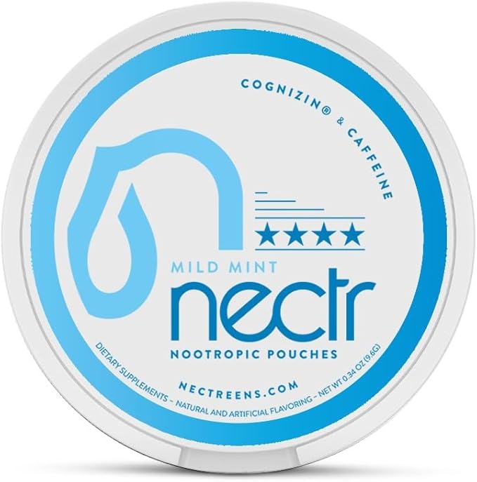 Nectr Nootropic Energy Pouches, Focus & Energy, Mild Mint, Cognizin 62.5 mg, Caffeine 30 mg, 16 Pouches, Neuro Support, Sugar Free, 1 Can