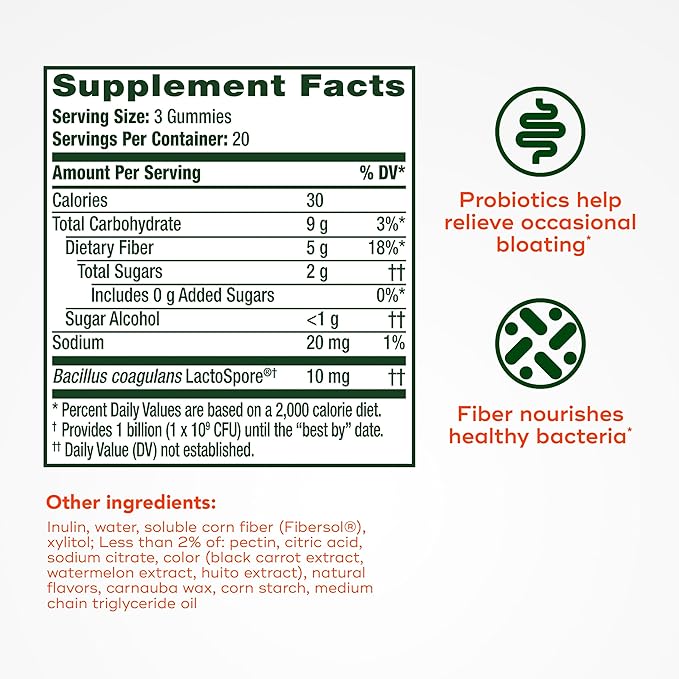 Align Probiotic, Probiotics + Fiber, Probiotics Help Relieve Occasional Bloating*, Fiber Helps Support a Healthy Digestive System*, #1 Doctor Recommended Probiotic Brand‡, 60 Gummies