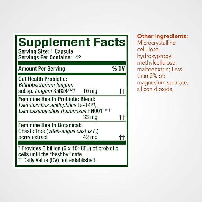 Align Probiotic, Women's Dual Action, Probiotics for Women, Multi-Strain Probiotic with Chaste Tree, Supports Feminine Health*, Relieves Occasional Bloating, Gas, Abdominal Discomfort*, 42 Capsules