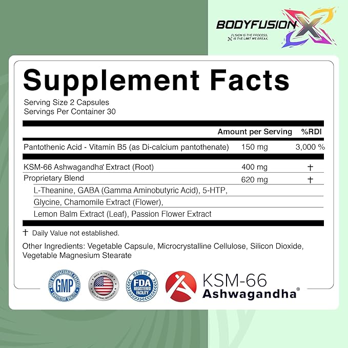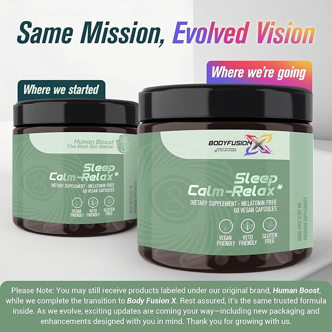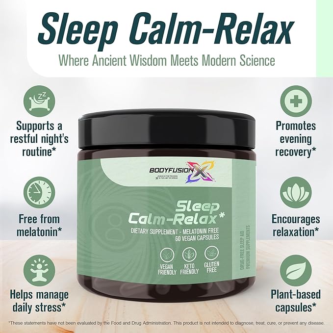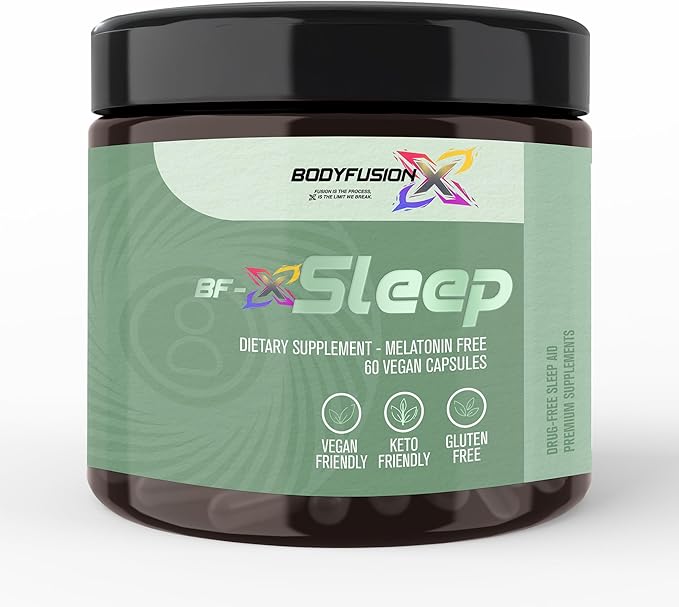 BodyFusion X Sleep Support - Premium Sleep Supplement with Ashwagandha KSM-66, Vitamin B5, L Theanine, & Lemon Balm - Promotes Deep Sleep, Mood Balance, Recovery, & Relaxation - 60 Vegan Capsules