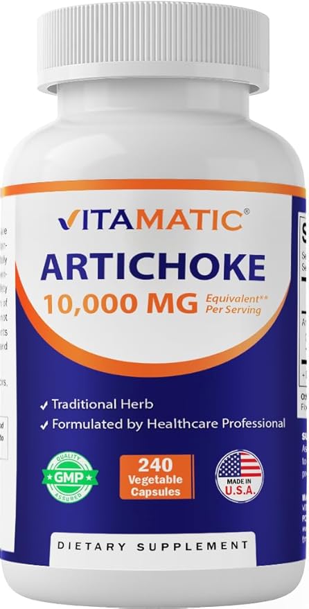 Vitamatic Artichoke Extract Vegetable Capsules 1000mg 240 Count - 10:1 Extract 1000 mg - Non-GMO, Gluten Free Supplement - Made in The USA