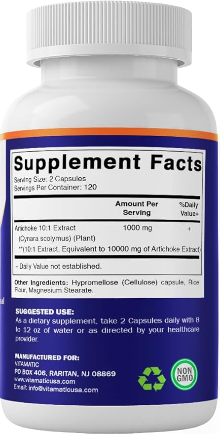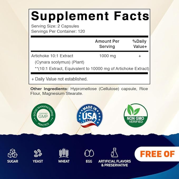 - High Potency: Each serving delivers 1000 mg of artichoke extract 10:1, providing a concentrated dose in every capsule.