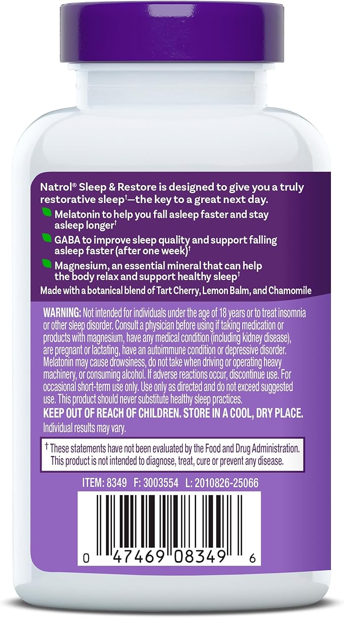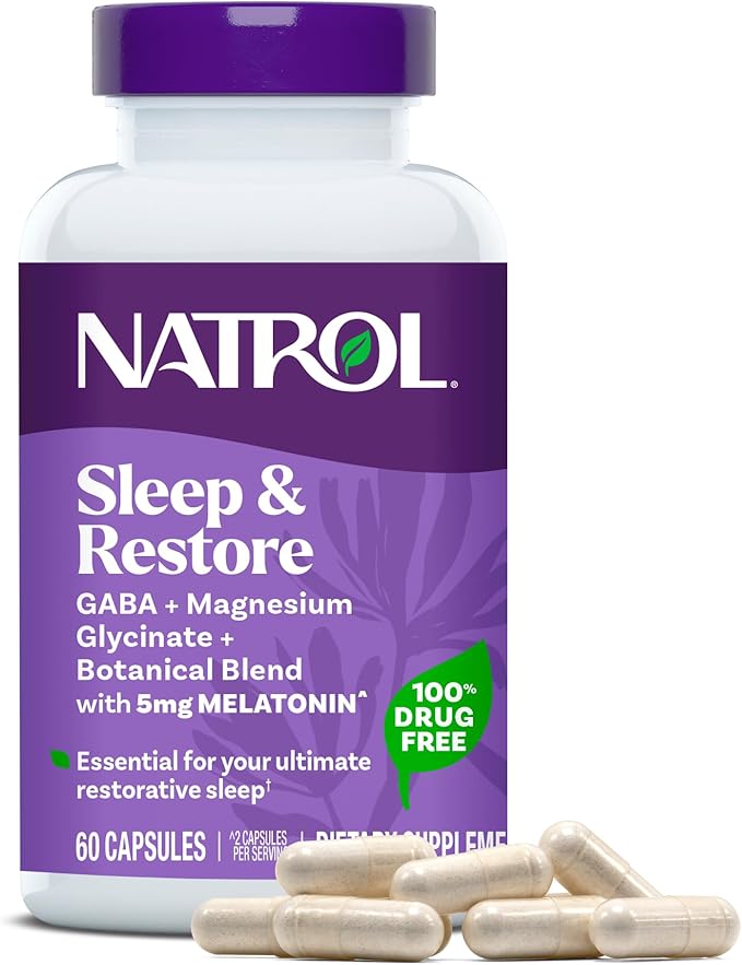 Natrol Sleep & Restore Capsules - Calm Magnesium Glycinate, Magnesium Sleep Aid with GABA, Melatonin 5mg, Botanical Blend, 30 Day Supply