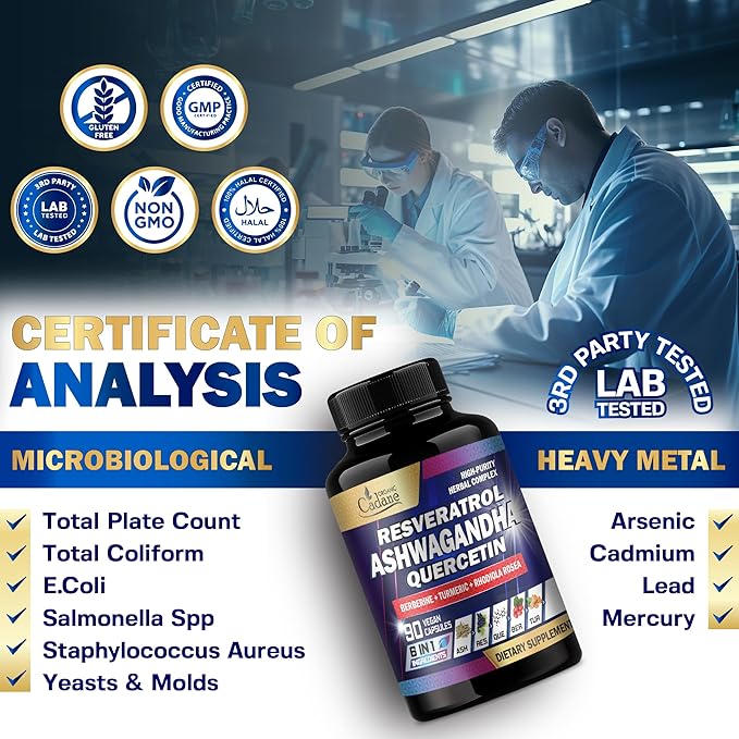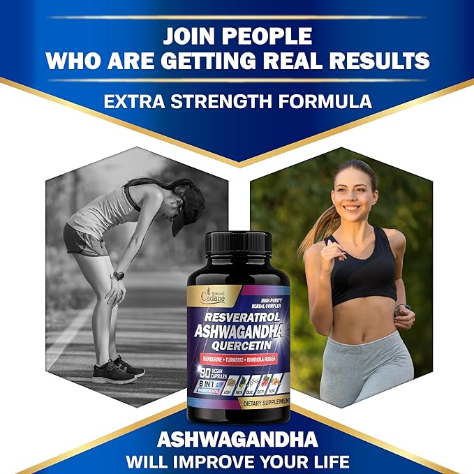 - ♥️ Experience the extraordinary benefits of our Ashwagandha Complex with a blend combination of the collaborative of Ashwagandha Root, Resveratrol, Quercetin, Berberine, Turmeric, and Rhodiola Rosea. Products with optimal formulas offer comprehensive support for your well-being, helping you start your day full of energy