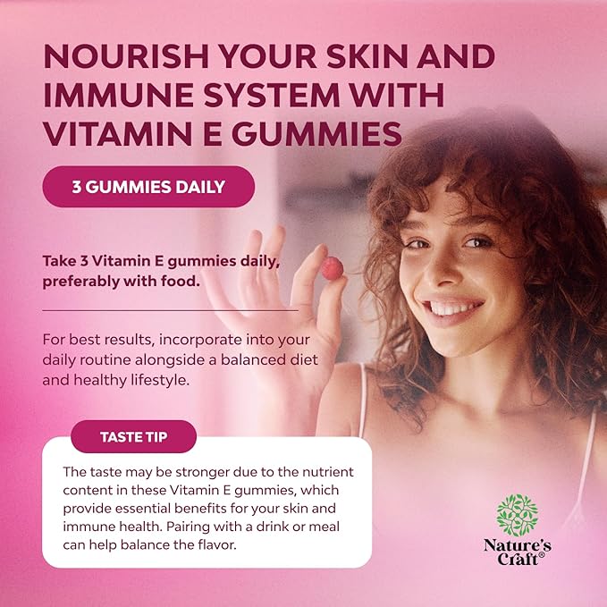 Natures Craft Vitamin E Gummies for Skin Care - High-Potency Vitamin E 400 IU Skin Supplement - Delicious & Easy-to-Take Supplement Promote Health Immune Support & Cellular Protection (1 Month)