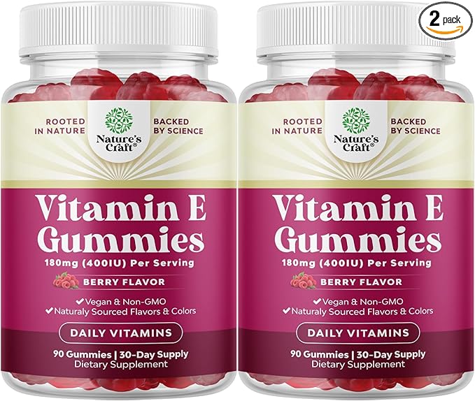 Natures Craft Vitamin E Gummies for Skin Care - High-Potency Vitamin E 400 IU Skin Supplement - Delicious & Easy-to-Take Supplement Promote Health Immune Support & Cellular Protection (2 Months)
