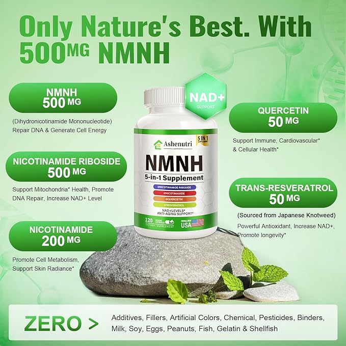 - Boost declining NAD+ levels with bioavailable NMNH - a superior alternative to standard NAD supplements. Our anti-aging formula combines NMNH with Nicotinamide Riboside, Resveratrol, and Quercetin to enhance cellular repair, brain health, and immune function* while promoting longevity support*.