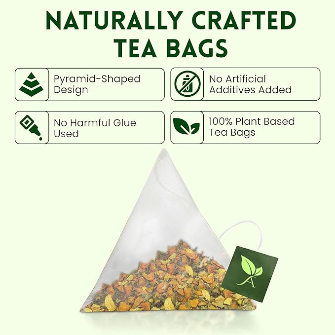 - Wholesome Brew: With 100 pyramid-shaped turmeric tea bags, enjoy a full-flavored brew that is gluten-free, non-GMO, and made from 100% real ingredients. Packaged in eco-conscious materials without dyes or chemicals, these cinnamon tea bags provide a pure and soothing tea experience