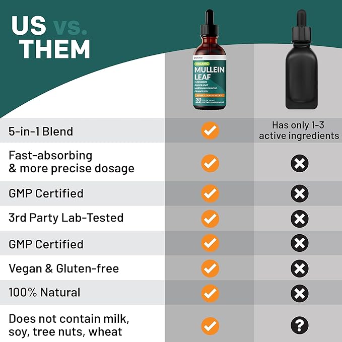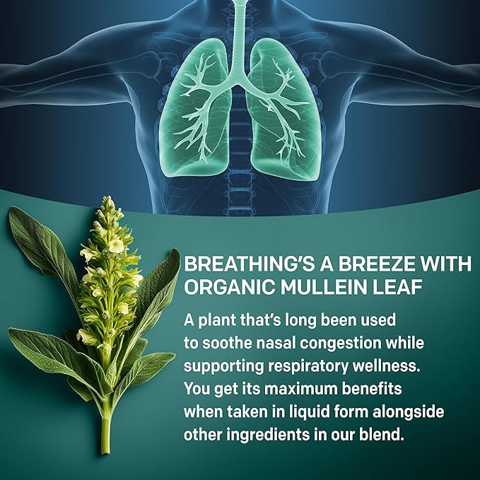 - Who is This For: Our Mullein Leaf drops for respiratory support are perfect for anyone looking to feel refreshed and supported during seasonal shifts or stuffy days.