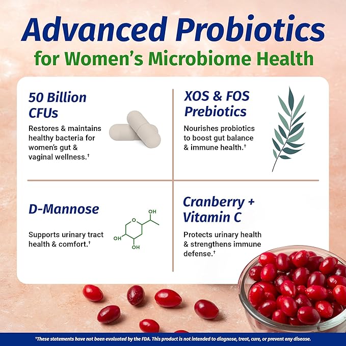 - IMMUNE SUPPORT WITH VITAMIN C & CRANBERRY - These prebiotics and probiotics for women include vitamin C and cranberry extract for added daily immune function support.