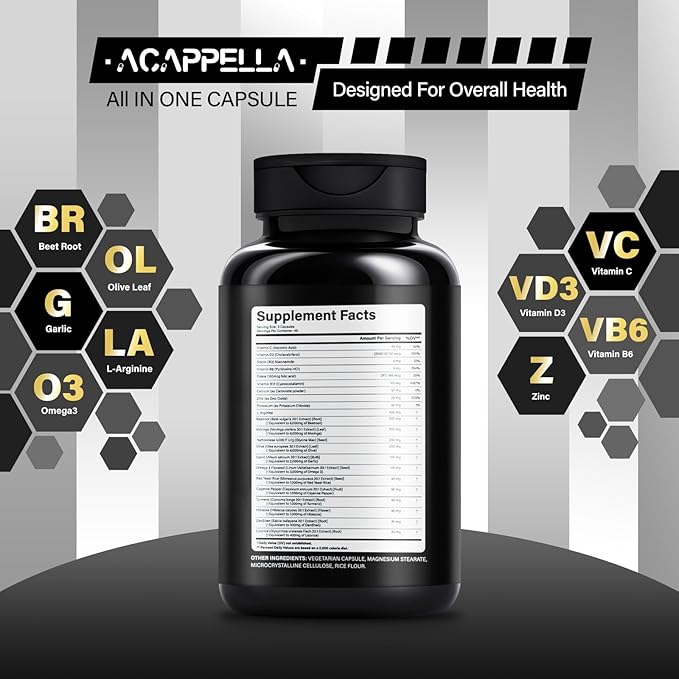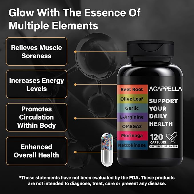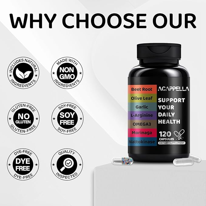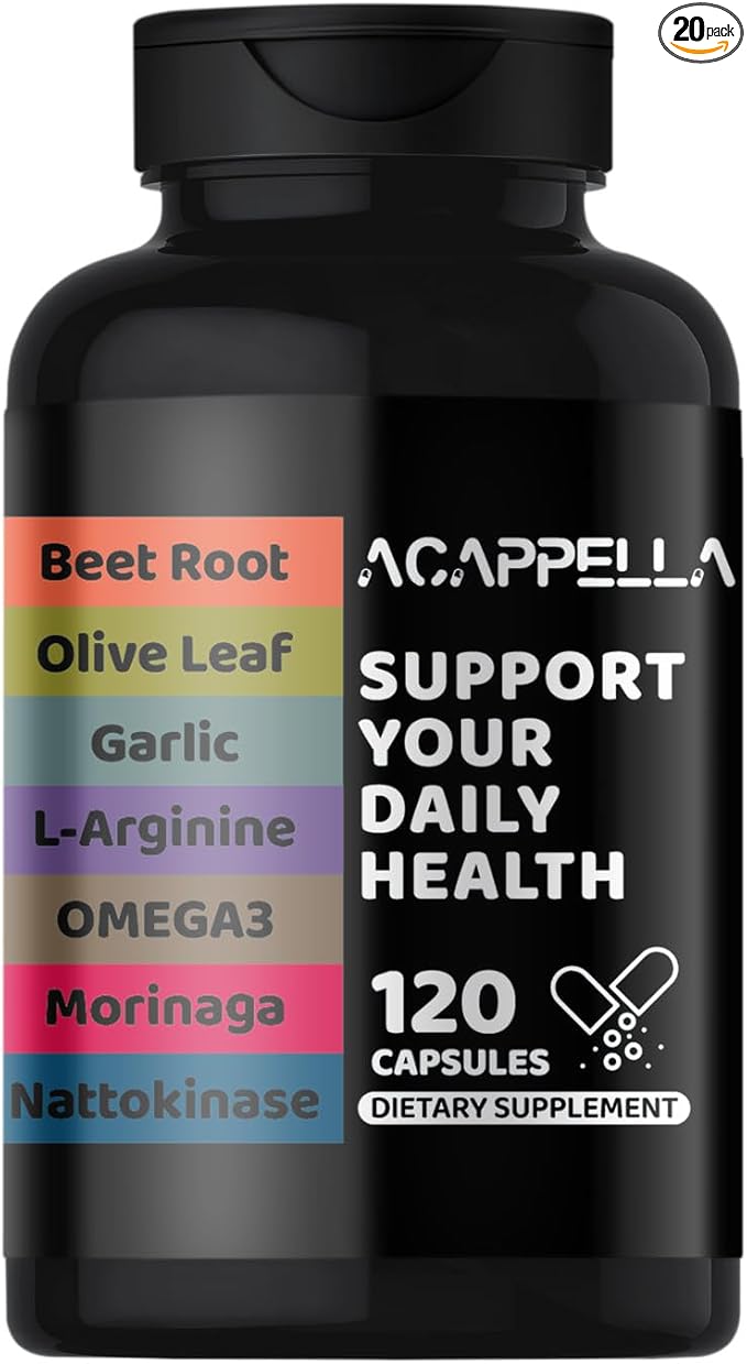 ACAPPELLA Beetroot, Olive Leaf, Garlic, L-Arginine, Omega-3, Morinaga, Nattokinase Supplements, Beetroot Capsules with Vitamin Complexes (1)