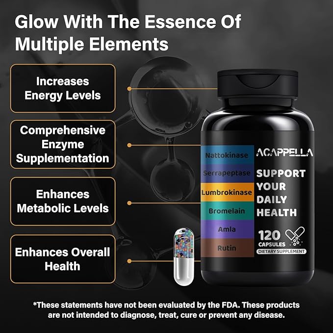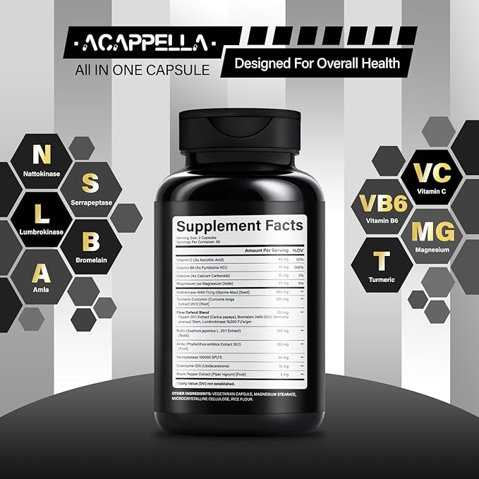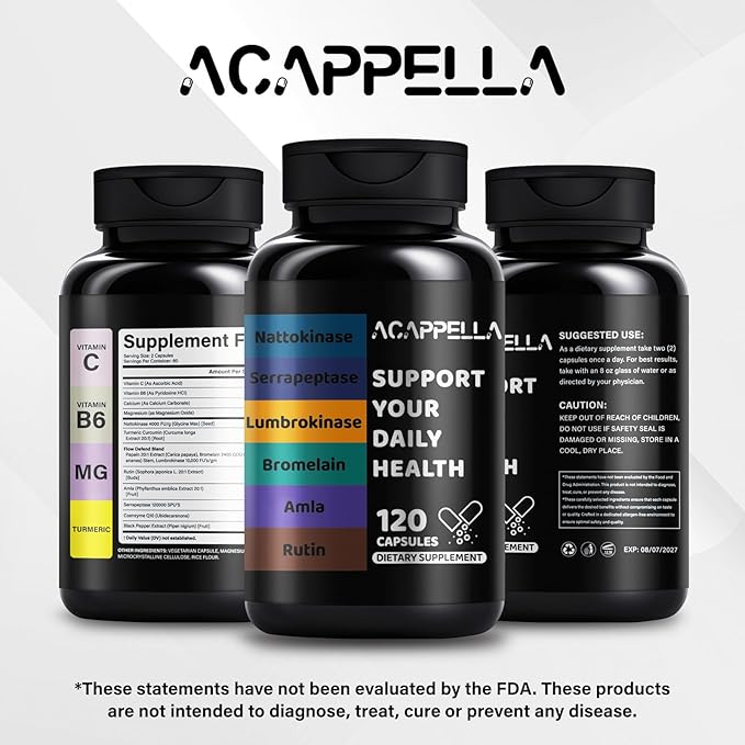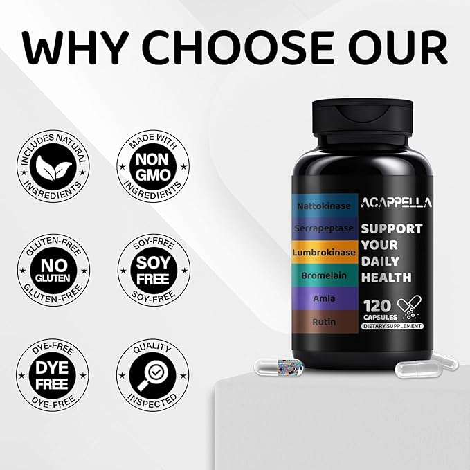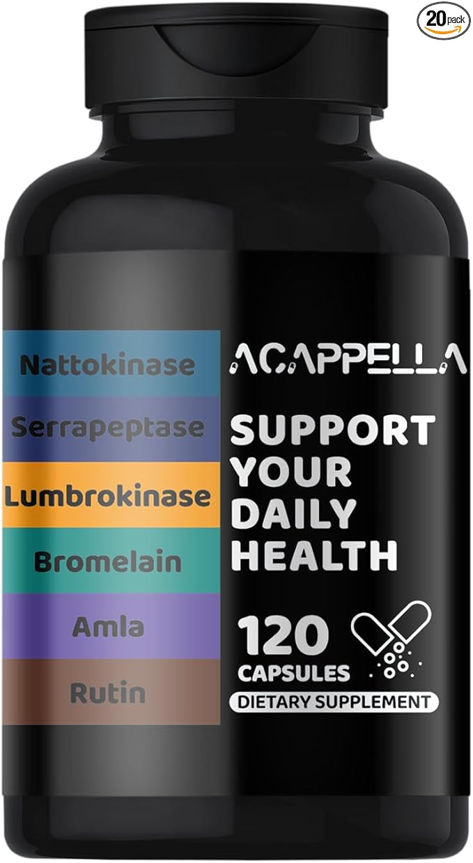 ACAPPELLA Nattokinase, Serrapeptase, Lumbrokinase Supplement, Bromelain, Amla, Rutin with Vitamin C & B6 Capsules (1)