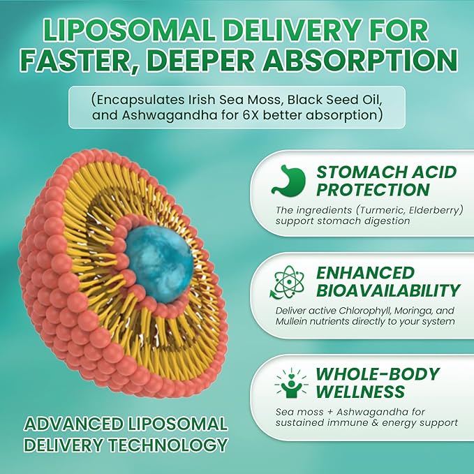 - Ultra-Potent 15-in-1 Sea Moss Liquid Drops ---- Experience the full power of irish sea moss, chlorophyll, moringa, black seed oil, ashwagandha, bladderwrack, burdock root, elderberry, manuka honey, and turmeric in one fast-absorbing liquid formula. Sea moss chlorophyll liquid has maximum absorption! Multimineral sea moss drops deliver 102+ minerals (iodine, potassium, magnesium, vitamins c/e/k) for immune support, thyroid balance, digestion, and detox—just 1- 2ml daily!