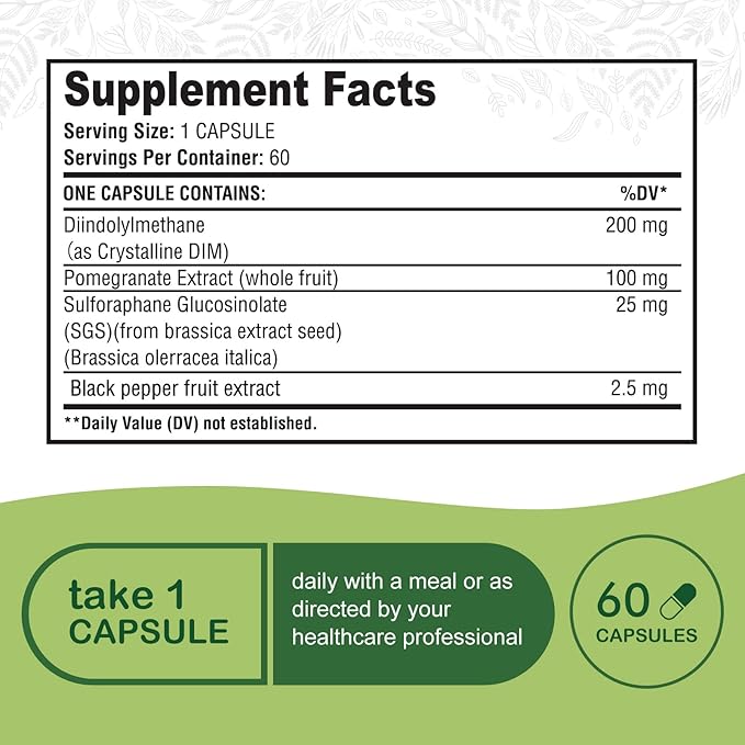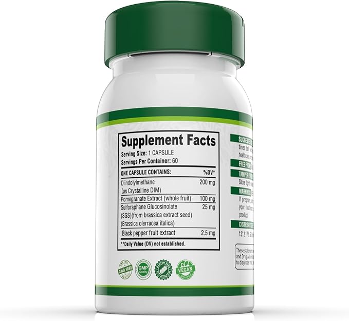 - Primary Supplement Type : Diindolylmethane (DIM), Sulforaphane (SGS), Black Pepper Fruit Extract