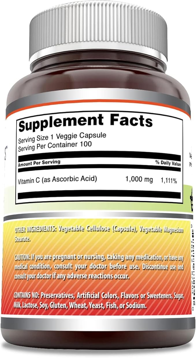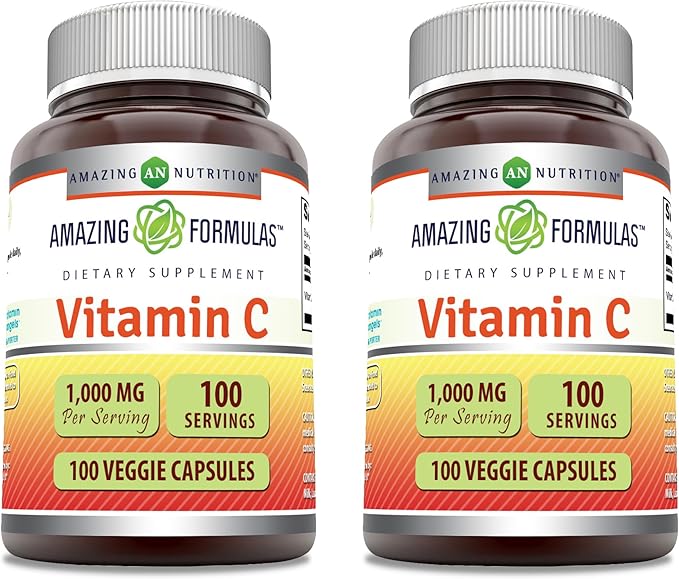 Amazing Formulas Vitamin C Supplement | 1000 Mg | Veggie Capsules | Non-GMO | Gluten-Free | Made in USA (100 Count, 2 Pack)
