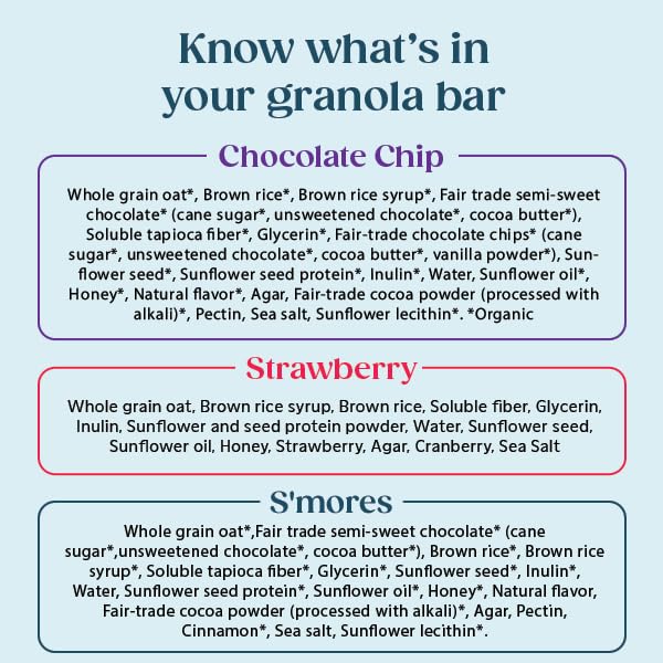All In Snack Bars Allergen Friendly Variety Pack - S’Mores, Chocolate Chip, & Strawberry - Gluten Free - Organic - Non-GMO - Low Sugar - High Fiber - Kosher- Nut Free - Dairy Free (15 Pack)