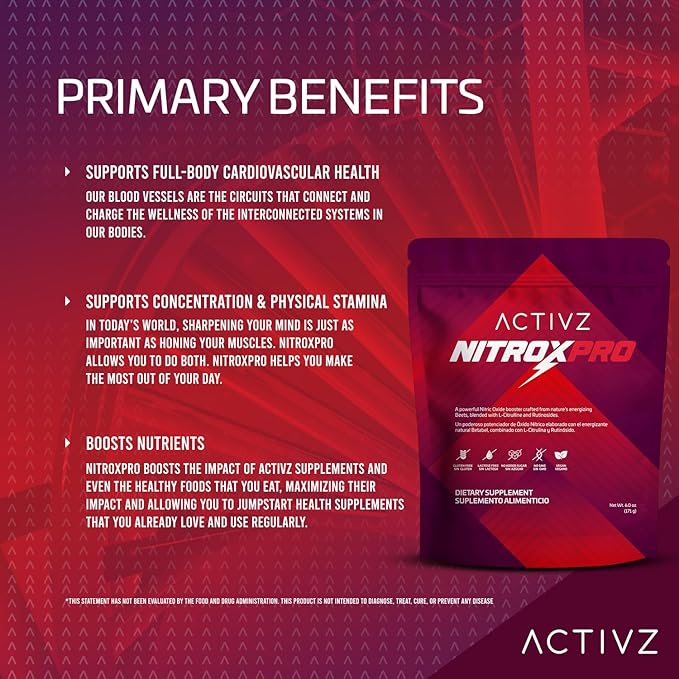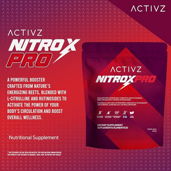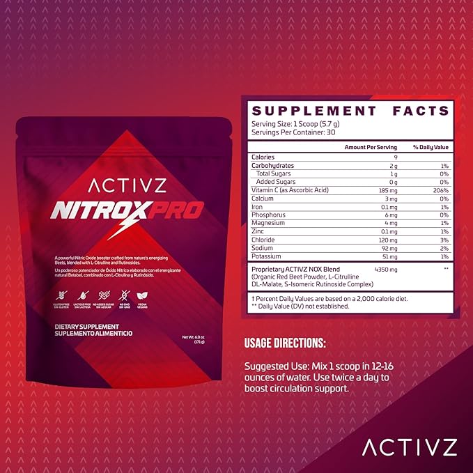 ACTIVZ NitroxPro™ Drink Powder - Beets, L-Citrulline, Rutinosides, CyLoc Dextrin & DexKey for Nitric Oxide, Cardiovascular Support, 6.0 oz (171g)